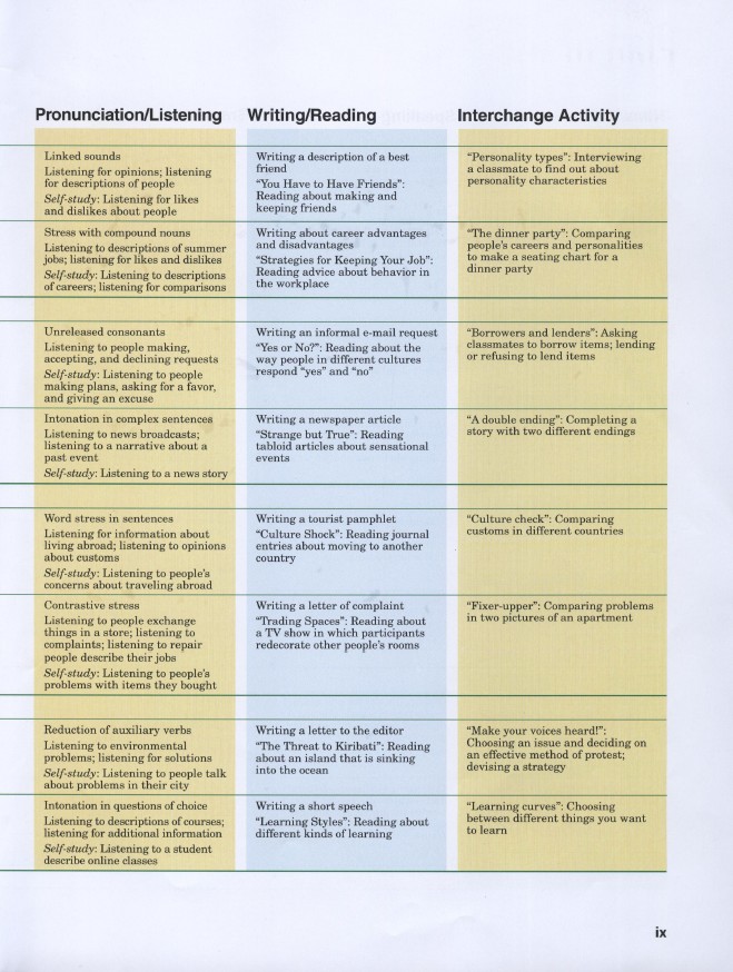 展现社交、请求、多元文化、抱怨、流行元素、环境问题、教育、个性、人生变化、成功经验、未来愿景、机遇挑战等复杂场景的对话与阅读。