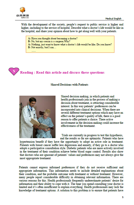 专业性强,词汇难度较大,适合基础比较扎实,需要提高医学领域英语口语水平的学习者。